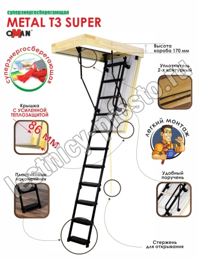 | Чердачная лестница OMAN Metal T3 SUPER 60×113 см, h-280 см |