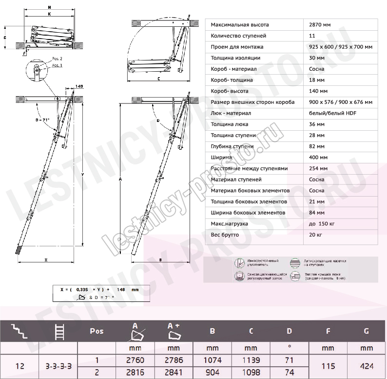Чердачная складная лестница PROF 36 Mini, 60×92.5