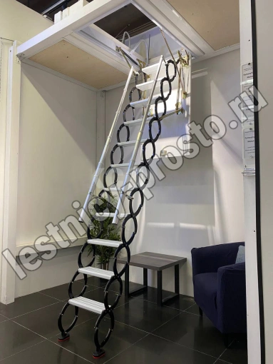 Ступени лестницы – из алюминия (белого цвета). Размер ступени 38х14 см