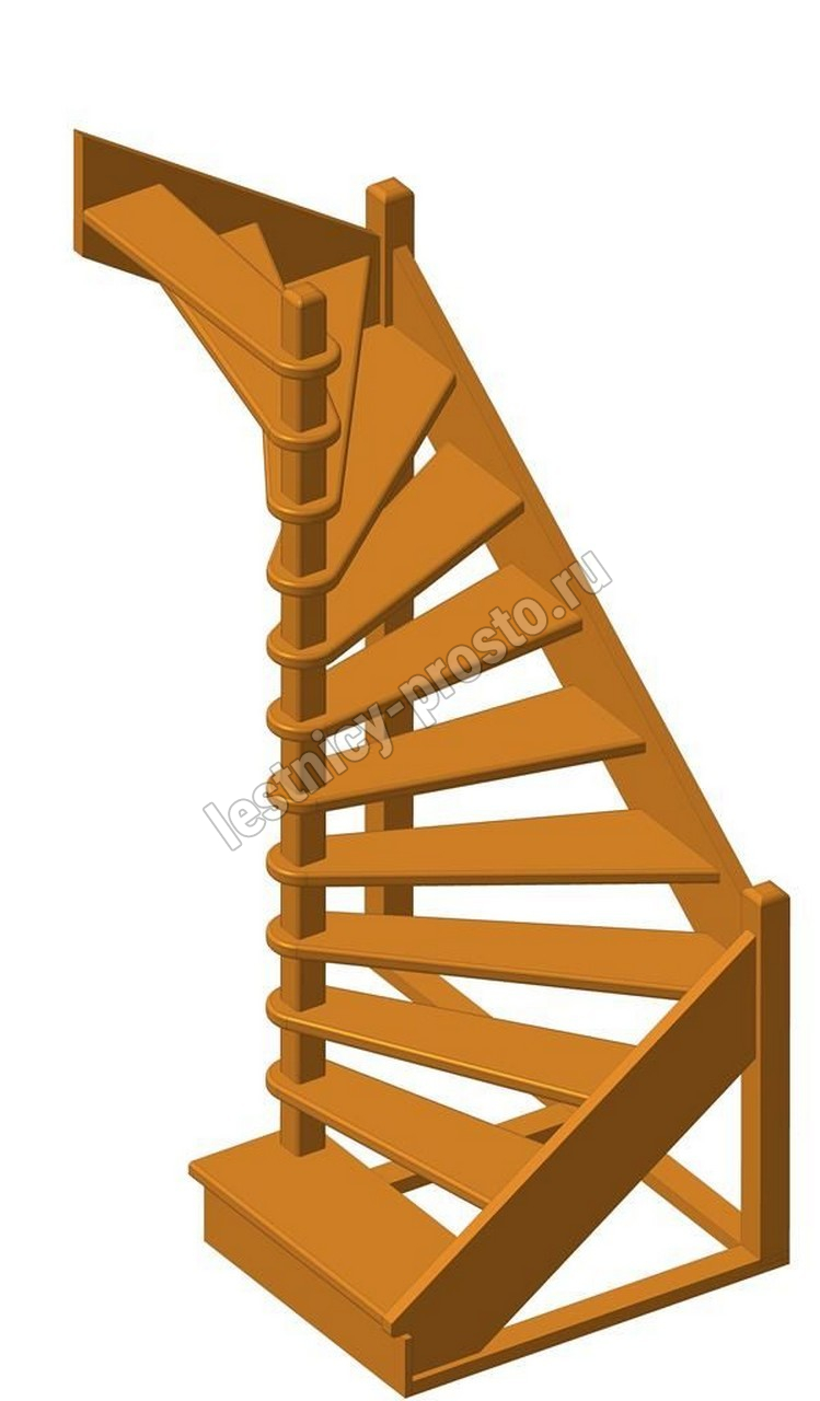 Деревянная межэтажная лестница ЛЕС-01 2720-2920 проем 1630-1120, Бук