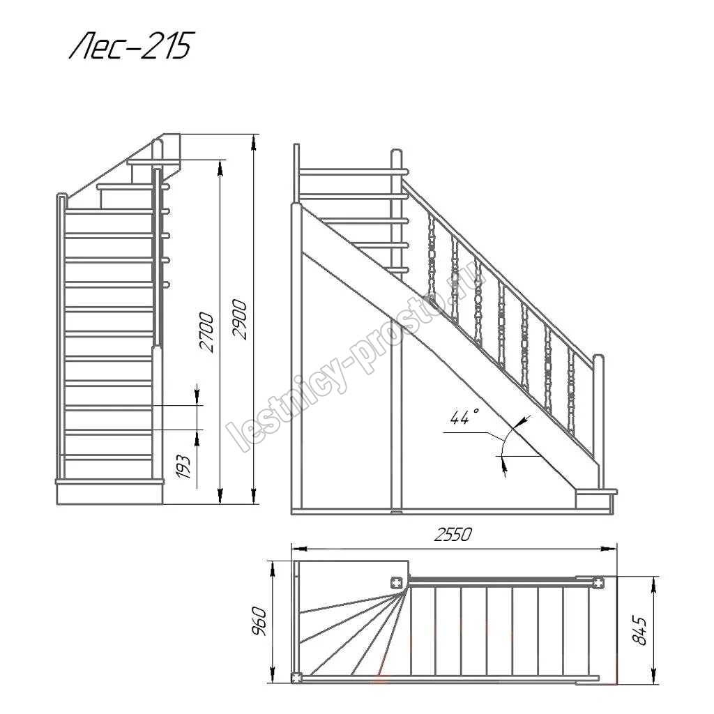 Деревянная межэтажная лестница ЛЕС-215, Бук