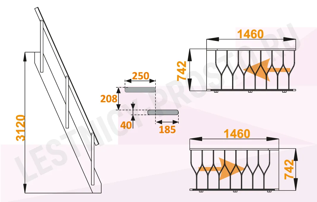 Высота лестницы 2912 - 3120 мм