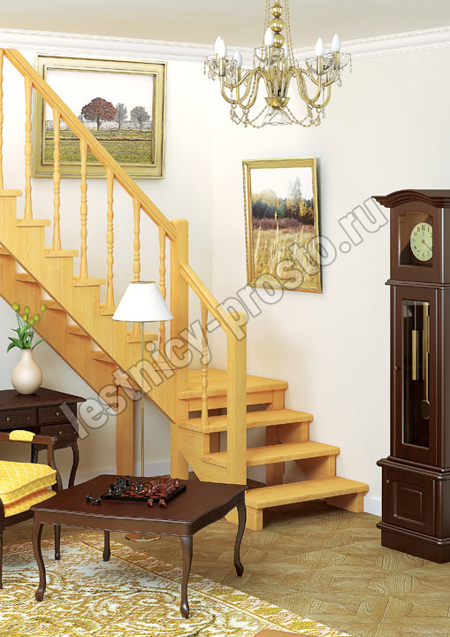 | Деревянная межэтажная лестница ЛЕС-08, Сосна |