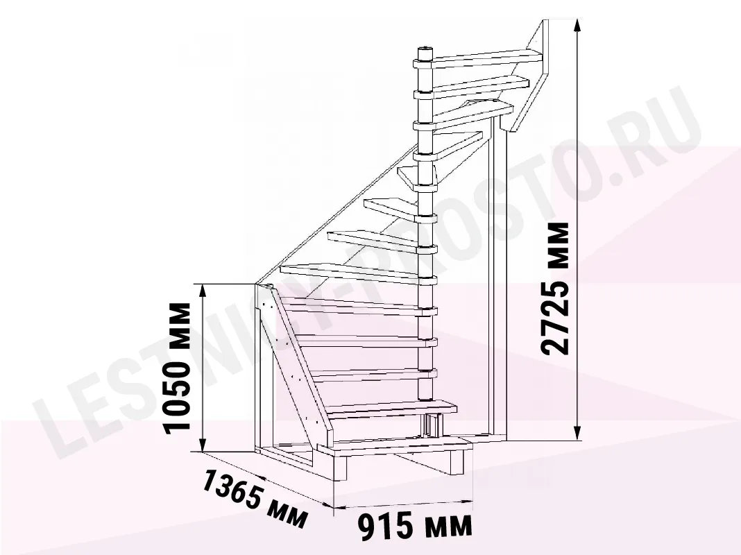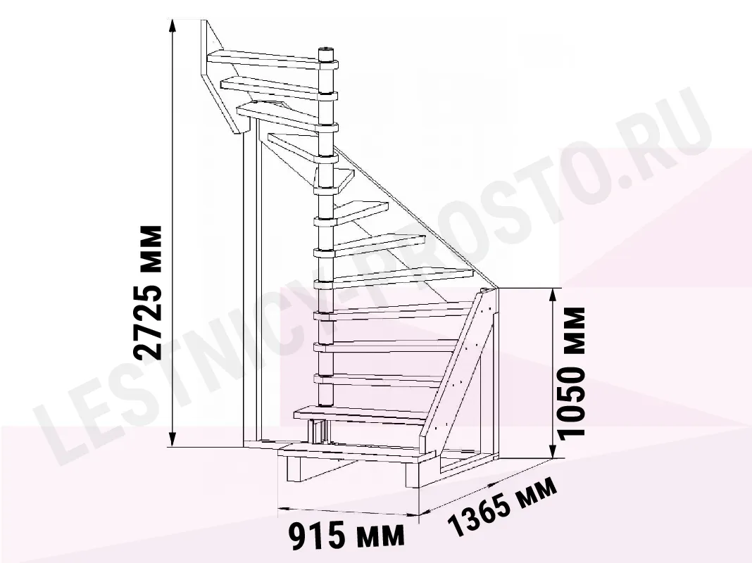 Базовый комплект включает в себя деревянные элементы лестницы без какого-либо покрытия. Лестница поставляется в разобранном виде.