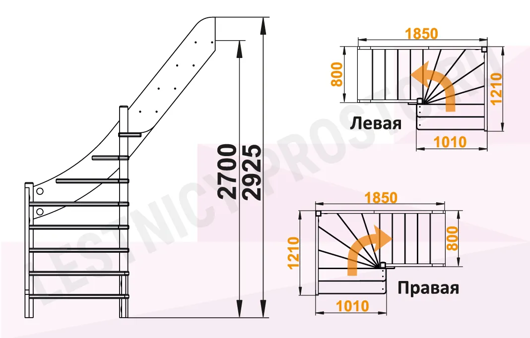У лестницы  6 вариантов размера