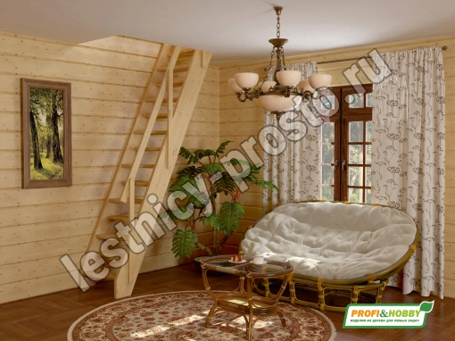 Ступени и поручень лестницы изготовлены из бука, остальные элементы из сосны.