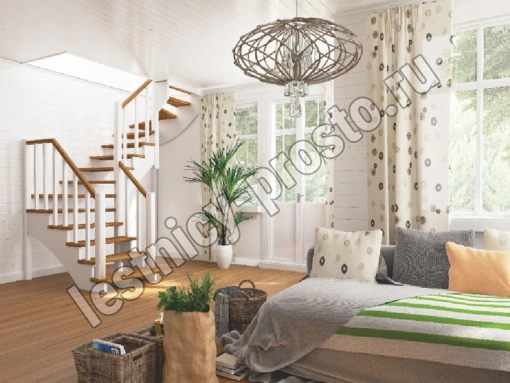 Ступени и поручень лестницы выполнены из бука, остальные элементы из сосны. Возможно изготовление данной модели полностью из бука.