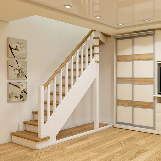 Ступени и поручень лестинцы изготовлены из бука, остальные элементы из сосны.