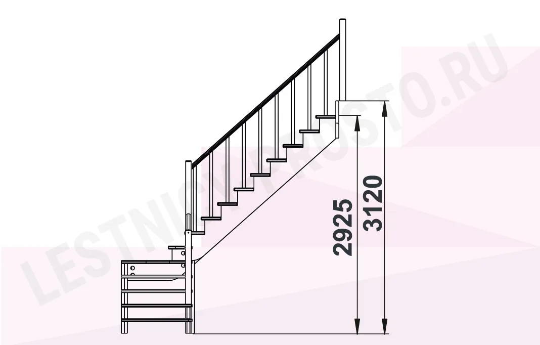 Высота лестницы 2925 - 3120 мм