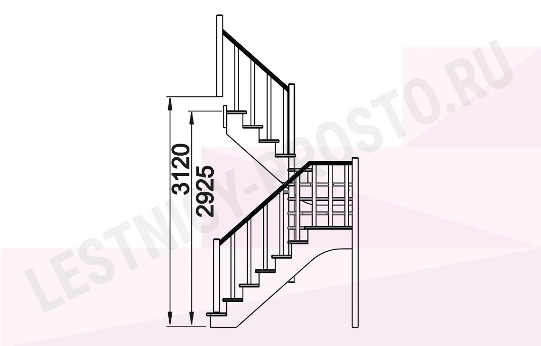 Схема лестницы К-034М с поворотом налево