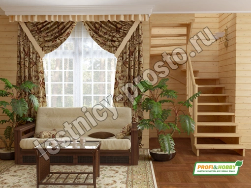 Ступени и поручень изготовлены из дуба, остальные элементы лестницы из сосны.