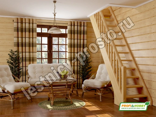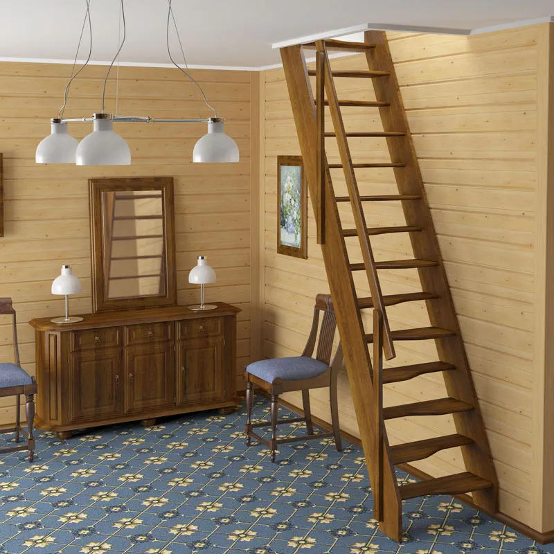 Ступени и поручень лестницы изготовлены из дуба, остальные элементы из сосны.