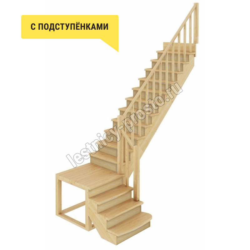 Лестница из сосны К-002М/1 с подступёнками под покраску