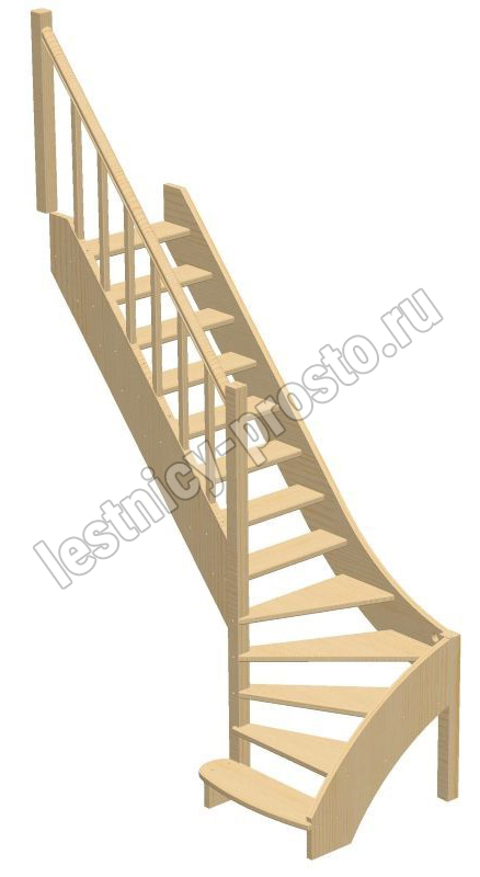 Базовый комплект включает в себя деревянные элементы лестницы и ограждения без какого-либо покрытия.