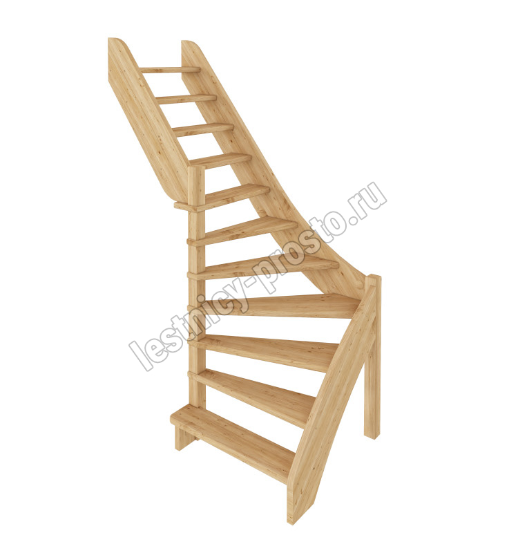 Базовый комплект включает в себя деревянные элементы лестницы без какого-либо покрытия.