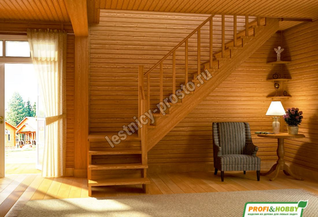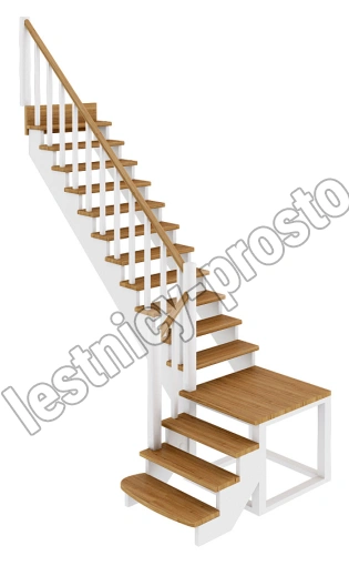 Материал: Ясень (ступени и поручень), сосна (косоуры, столбы, балясины)