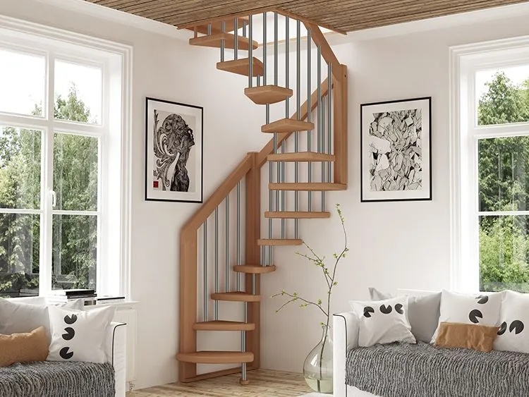 Базовый комплект включает в себя деревянные элементы лестницы и ограждения без какого-либо покрытия.