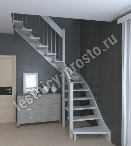 Лестница Prosto Console г-образная забежная сосна, h247.5 см (10 ступеней)
