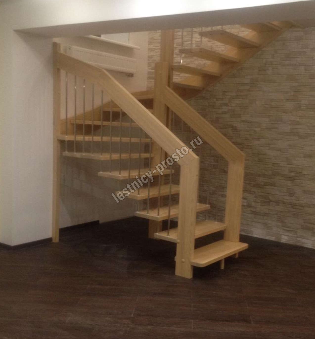 Надёжная современная лестница выполнена по немецкой технологии. Стоимость указана для лестницы с ограждением (с одной стороны); Поставляется в разобранном виде, в комплекте необходимый крепёж; Лестницу можно собрать самостоятельно; Так же, вы можете заказать услугу монтажа нашими специалистами; 4 вида породы дерева для изготовления лестницы: сосна, бук, ясень, дуб; возможна комбинированная лестница: из сосны (ступени бук, ясень, дуб); Деревянные элементы без какого-либо покрытия, отшлифованы, готовы к покраске. За дополнительную плату, вы можете изменить любые параметры, а именно: увеличить глубину ступени; увеличить ширину марша до 900 мм. и выше; заказать подступенки к лестнице; заказать отделку перекрытия (между 1-м и 2-м этажами); изготовить дополнительный промежуточный марш; заказать ограждение 2-го этажа; покраска в любой цвет или несколько цветов или покрытие защитными средствами; дополнение балясины из нержавеющей стали деревянными элементами; покраска балясин из нержавеющей стали порошковой краской в цвет RAL.