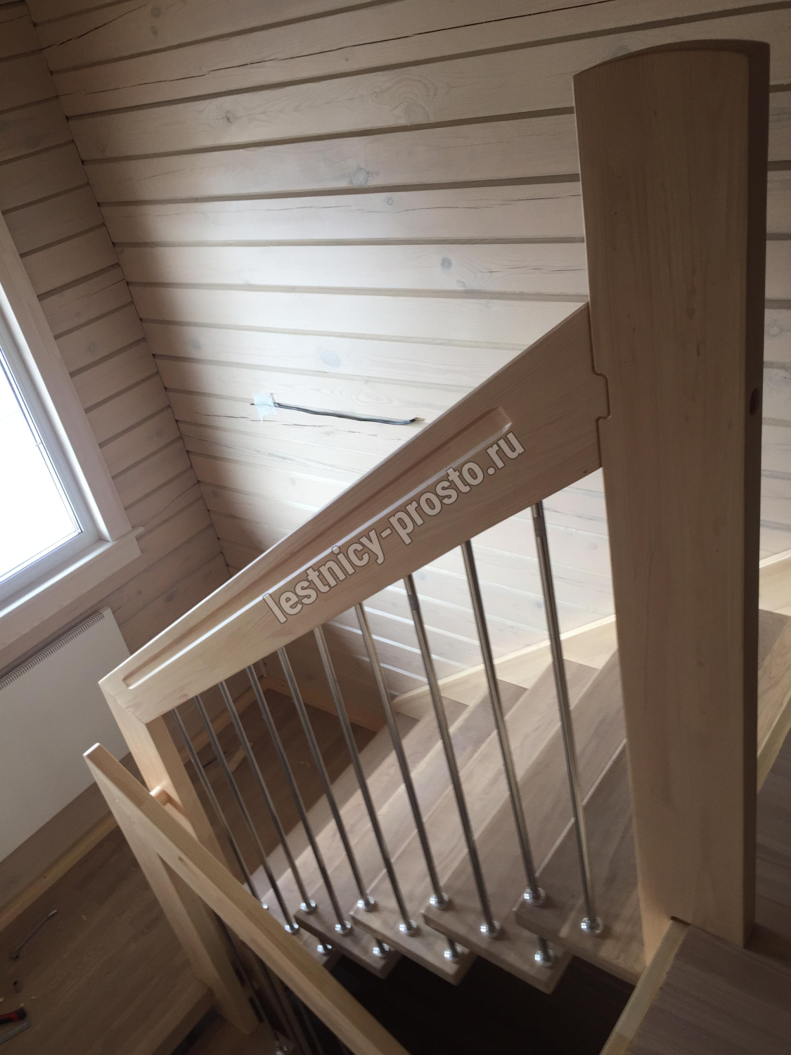 Надёжная современная лестница выполнена по немецкой технологии. Стоимость указана для лестницы с ограждением (с одной стороны); Поставляется в разобранном виде, в комплекте необходимый крепёж; Лестницу можно собрать самостоятельно; Так же, вы можете заказать услугу монтажа нашими специалистами; 4 вида породы дерева для изготовления лестницы: сосна, бук, ясень, дуб; возможна комбинированная лестница: из сосны (ступени бук, ясень, дуб); Деревянные элементы без какого-либо покрытия, отшлифованы, готовы к покраске. За дополнительную плату, вы можете изменить любые параметры, а именно: увеличить глубину ступени; увеличить ширину марша до 900 мм. и выше; заказать подступенки к лестнице; заказать отделку перекрытия (между 1-м и 2-м этажами); изготовить дополнительный промежуточный марш; заказать ограждение 2-го этажа; покраска в любой цвет или несколько цветов или покрытие защитными средствами; дополнение балясины из нержавеющей стали деревянными элементами; покраска балясин из нержавеющей стали порошковой краской в цвет RAL.