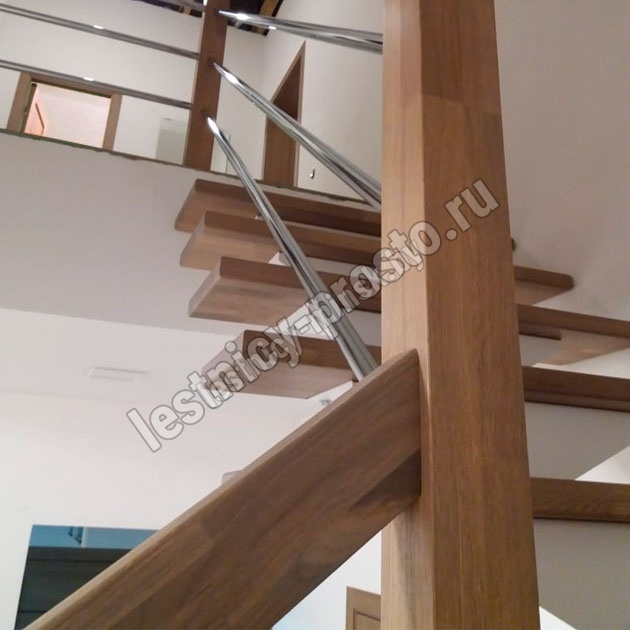 В комплекте: 3 прямых деревянных столба без какого-либо покрытия и профильный поручень без покрытия, комплект из 3 ригелей из стали (окрашены в цвет каркаса или хром по желанию) диаметром 12 мм., необходимая фурнитура.