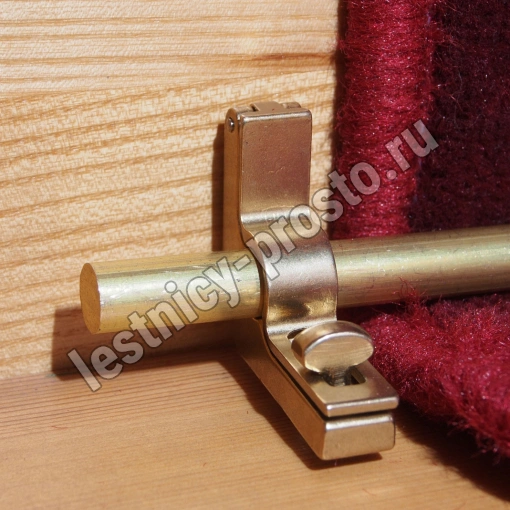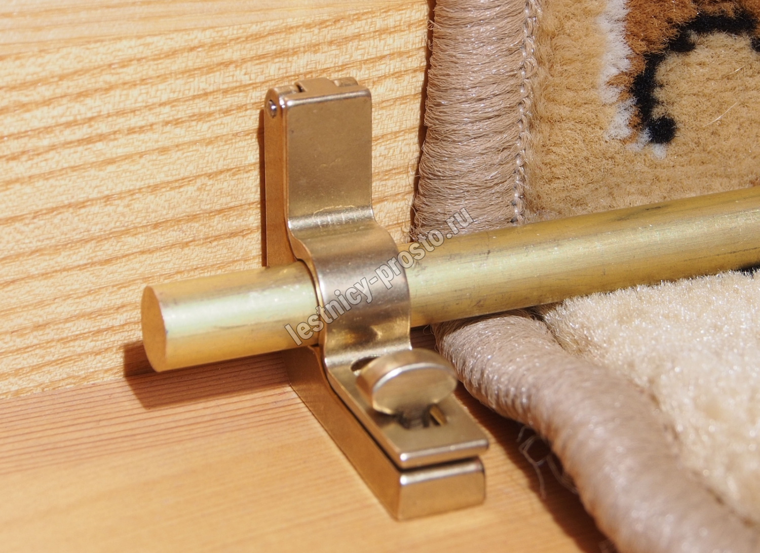 Ковродержатель комплектуется двумя держателями из латуни цвета золото, а также цельным прутком из латуни длиной от 201 до 250 см. Конструкция является сборно-разборной не требующей демонтажа креплений, что делает ее долговечной и очень удобной для чистки ковров и ковровых покрытий.