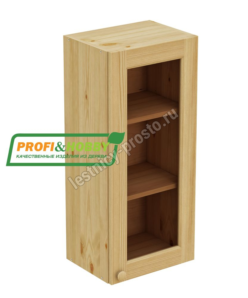 Шкаф навесной 400 х 300 х 900 под стекло, сосна, бесцветный акриловый лак