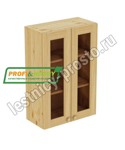 Шкаф навесной 600 х 300 х 900 под стекло, сосна, бесцветный акриловый лак
