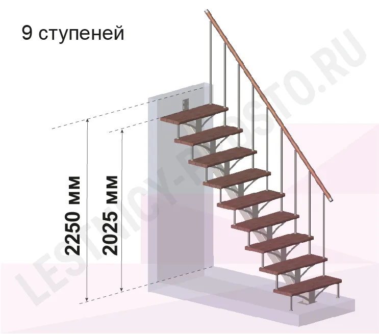 | Лестница PROSTO MONO прямая, h225 см, ступени хвоя |