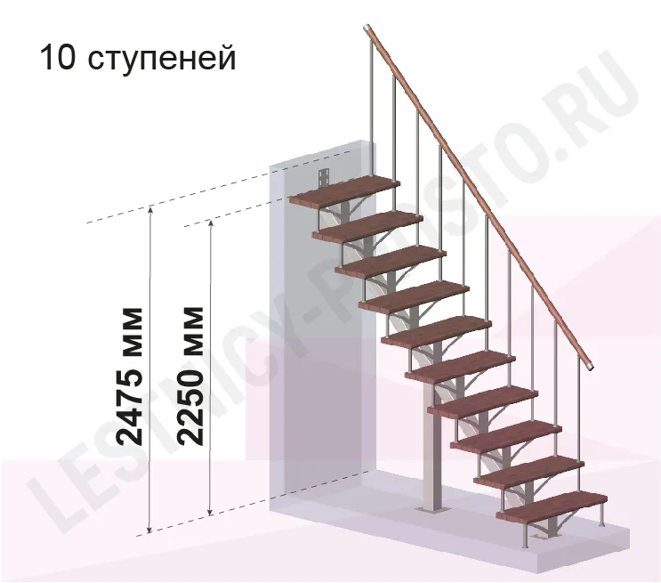 | Лестница PROSTO MONO прямая, h292.5 см, ступени хвоя |