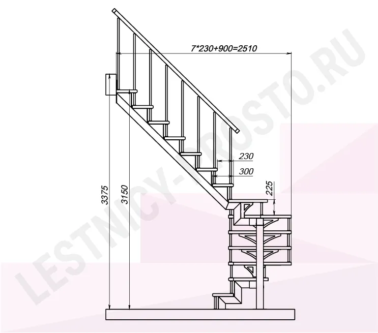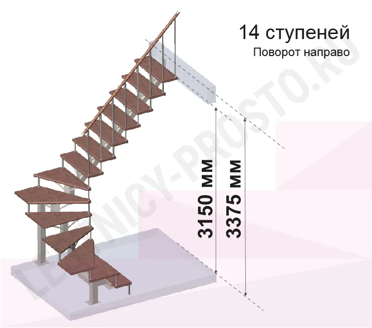 Высота лестницы 3150 - 3375 (14 ступеней) мм