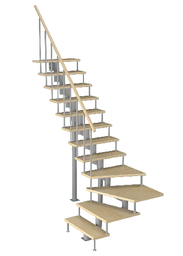 Поворот реализован посредством поворотных ступеней, высота поворота определяется параметрами вашего помещения и размерами проёма.