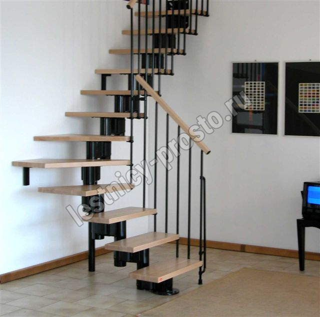Красивая комфортная лестница с уникальной модульной конструкцией, которая позволяет собрать большое число модификаций, подходящих под ваш проём и другие условия помещения. Возможные варианты сборки лестницы смотрите в блоке "чертежи и схемы". При монтаже модульной лестницы KOMPACT, вы можете варьировать высоту шага и проступь, получив точную необходимую высоту и габариты. Лестница KOMPACT возможна в двух вариантах: с шириной марша 740 мм и 890 мм. Ступени выполнены из массива бука и покрыты качественным износостойким лаком. Базовая комплектация позволяет получить лестницу под высоты этажа в диапазоне 2250 - 3030 мм, кроме того, установив дополнительный комплект увеличения высоты, можно поднять высоту лестницы до 3730 мм. Каркас и стойки ограждения выполнены из пластифицированного металла.