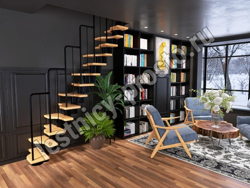 Лестница Prosto Urban Black гусиный шаг 700 мм, h198-288 см (11 ступеней), бук