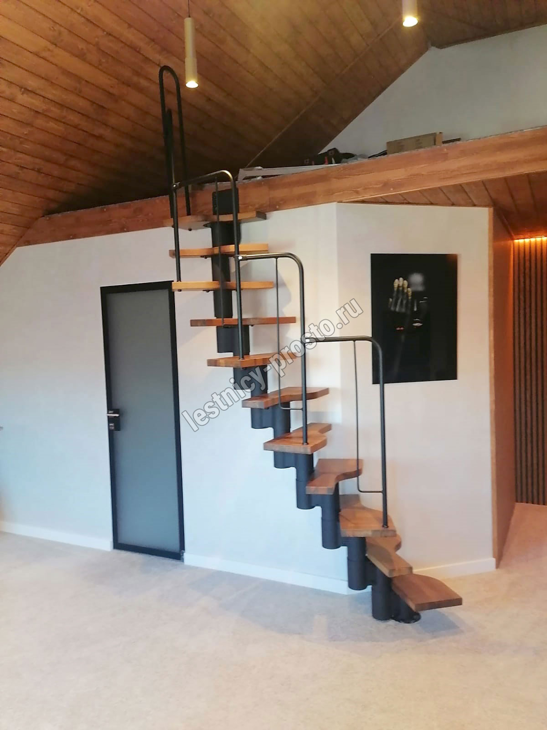 Лестница Prosto Urban Black гусиный шаг 700 мм, h216-312 см (12 ступеней), ясень