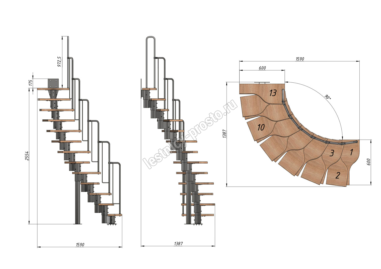Высота лестницы 2340 - 3360 (13 ступеней) мм