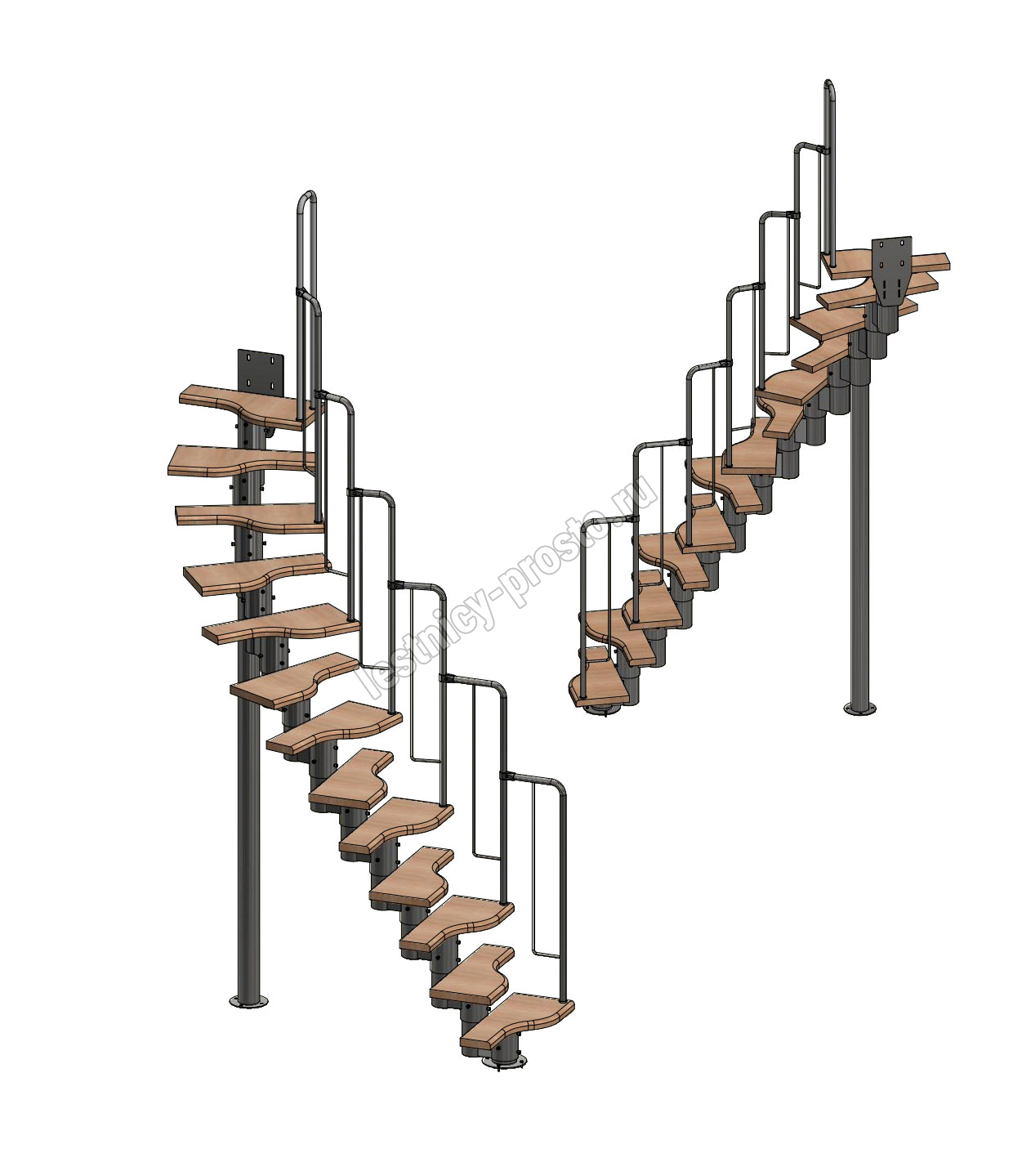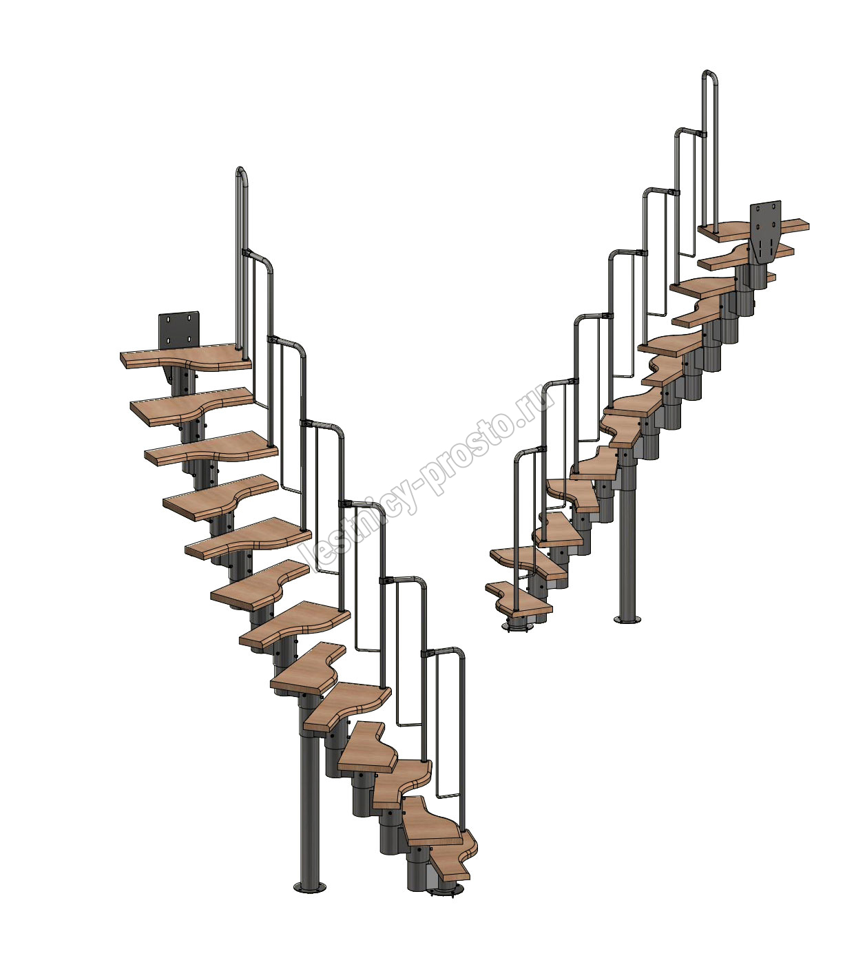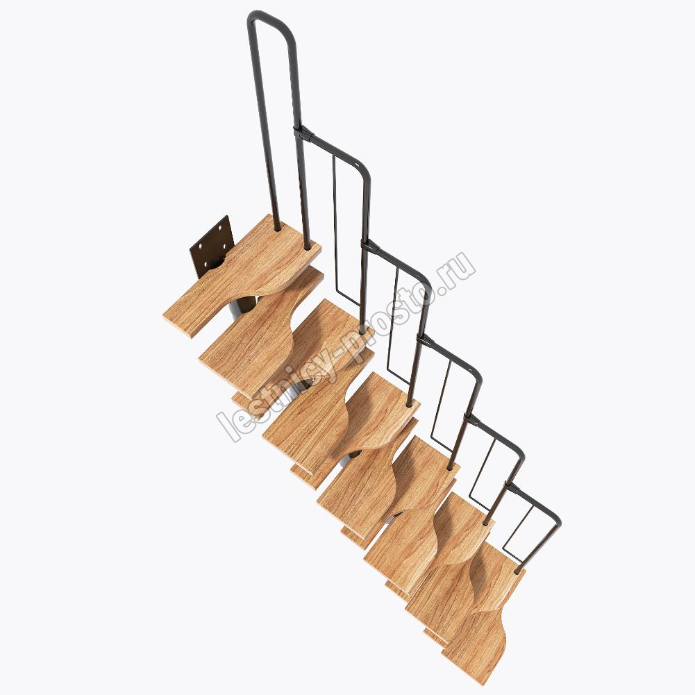 Лестница Prosto Urban Black гусиный шаг 600 мм, h234-336 см (13 ступеней), ясень