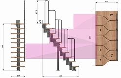 - Регулируемый по высоте в пределах 180-240 мм модуль. Большой диаметр и толщина металла деталей обеспечивают жесткость и прочность конструкции. Регулировка каждого модуля по высоте позволяет легко приспособить лестницу под ваше помещение.