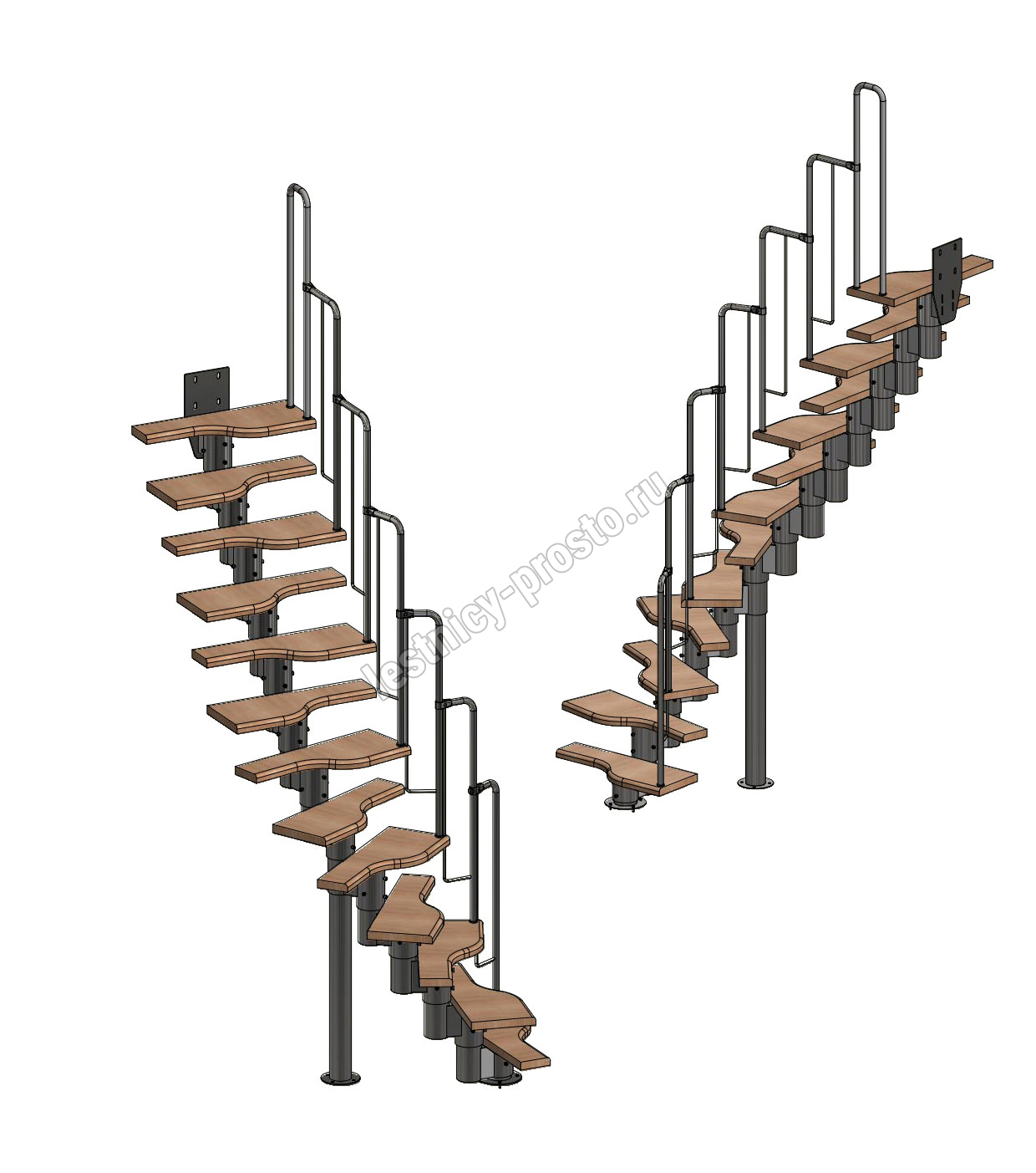 Лестница Prosto Urban White гусиный шаг 700 мм, h234-336 см (13 ступеней), бук