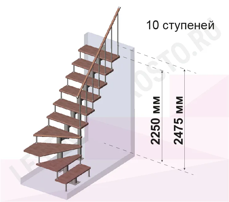 Количество ступеней до поворота - может быть любым , по запросу мы рассчитаем стоимость и сделаем чертеж-схему в соответствии с вашими параметрами.