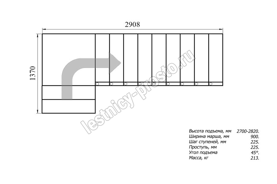 Модульная лестница Статус 225 2700-2820, Черный, Сосна, Нержавеющая сталь