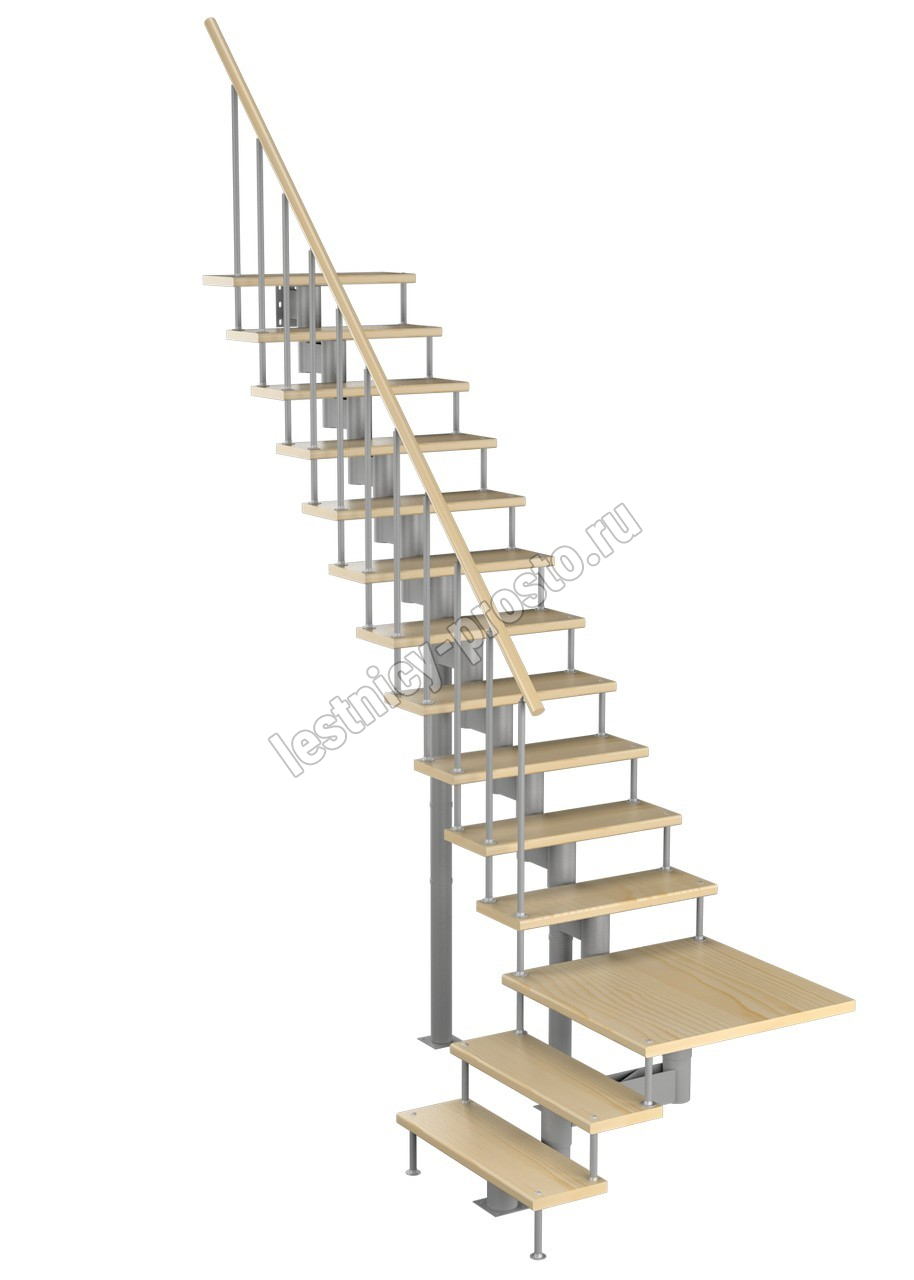 Модульная лестница Статус 225 3150-3290, Серый, Лиственница, Нержавеющая сталь