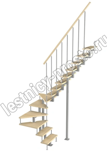 Модульная малогабаритная лестница Эксклюзив 3150-3375, Серый, Бук, Нержавеющая сталь