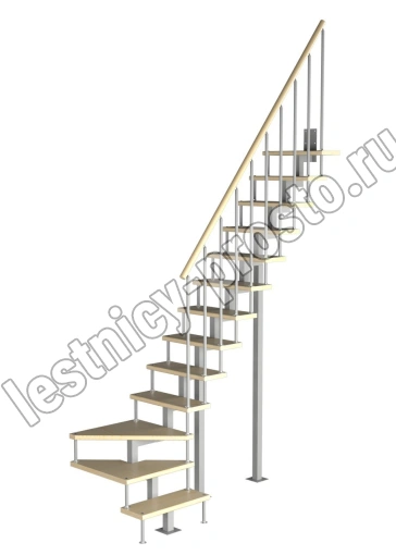 Модульная малогабаритная лестница Компакт 2925-3150, Серый, Сосна, Нержавеющая сталь