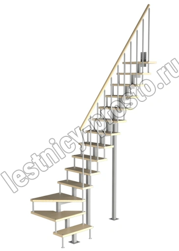 Модульная малогабаритная лестница Компакт 3150-3375, Серый, Бук, Нержавеющая сталь