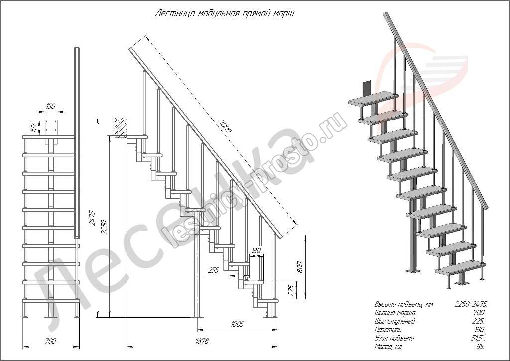Высота лестницы 2250 - 2475 мм