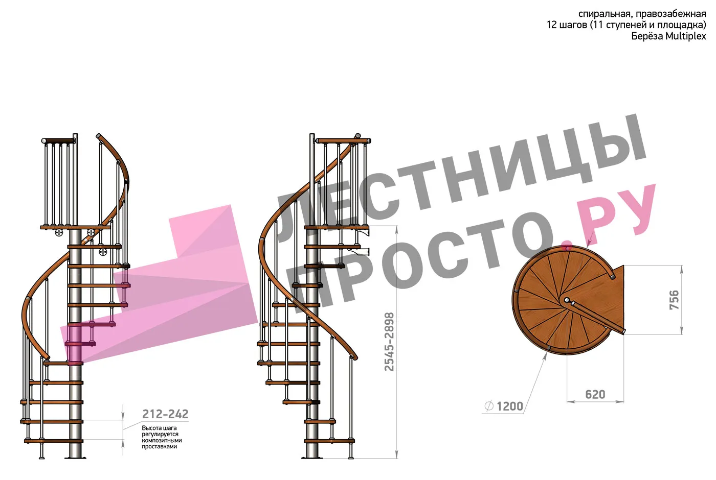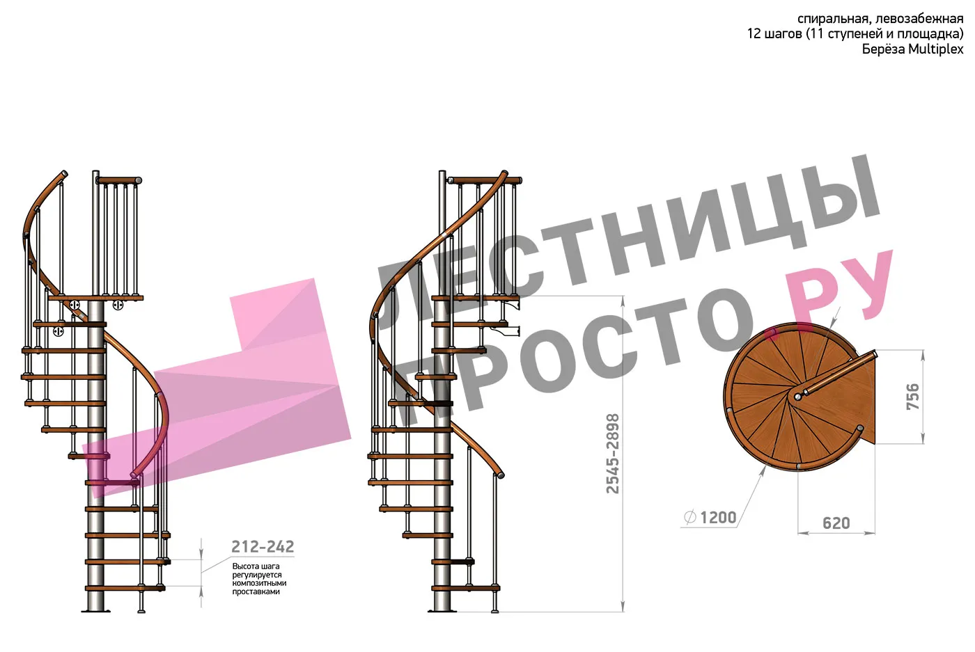 Высота лестницы 2545 - 2898 (11 ступеней) мм