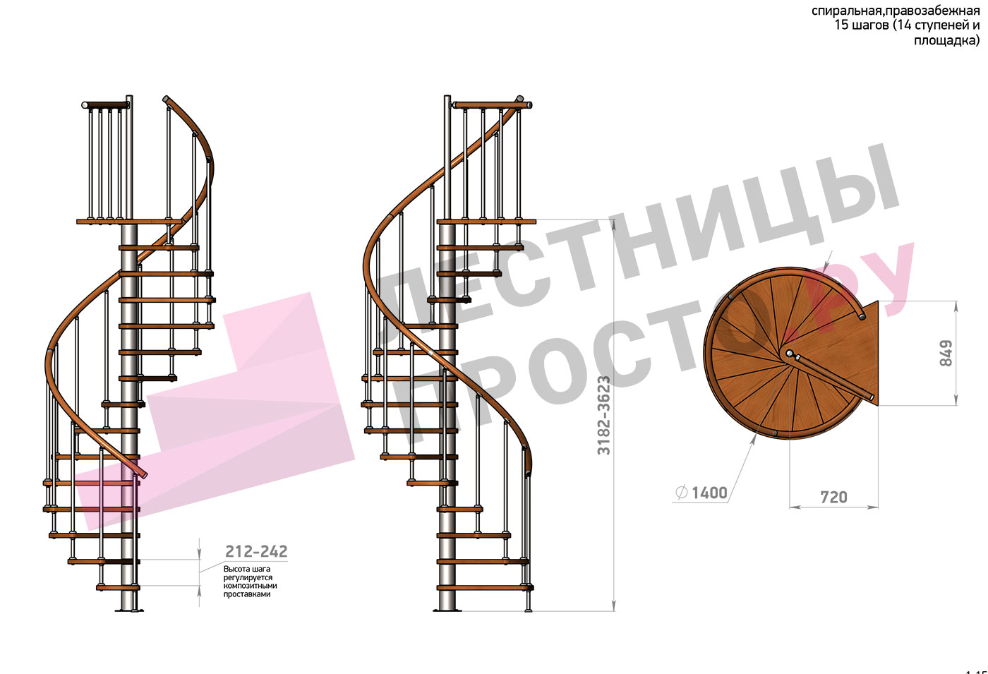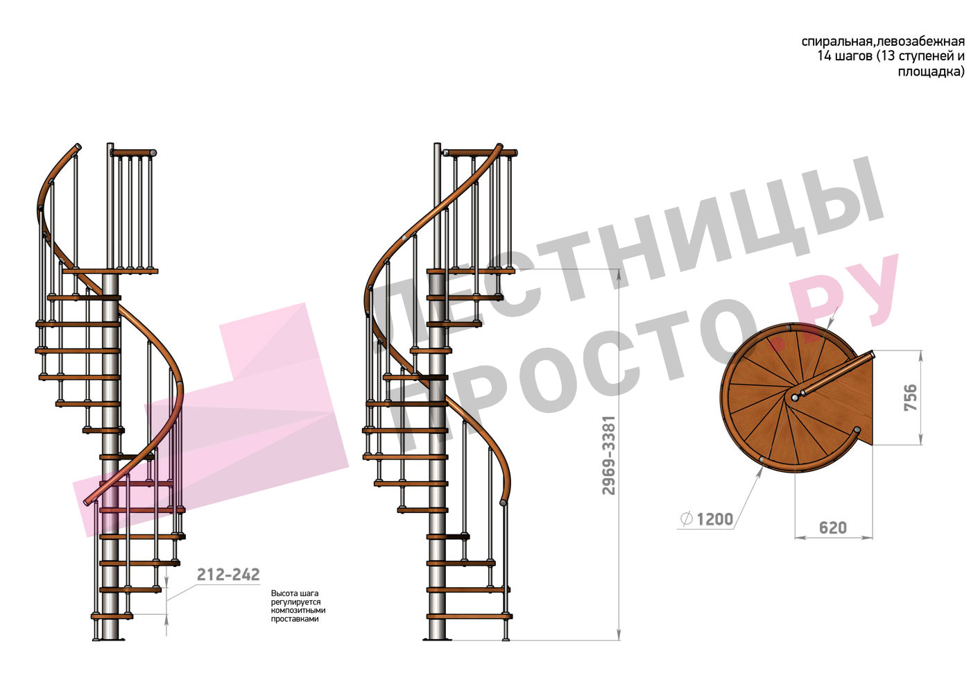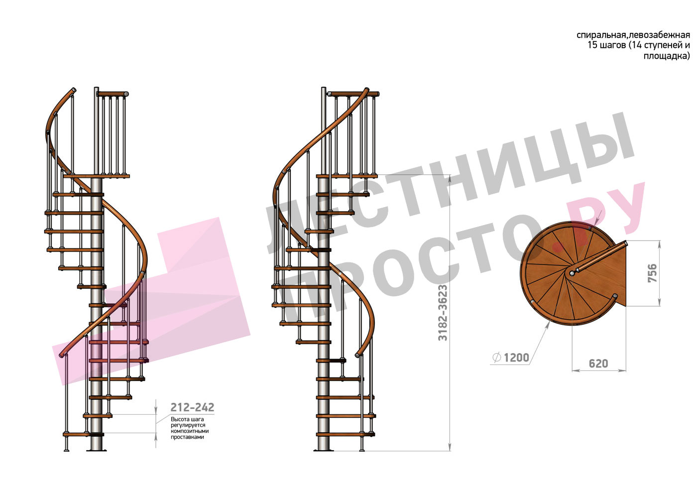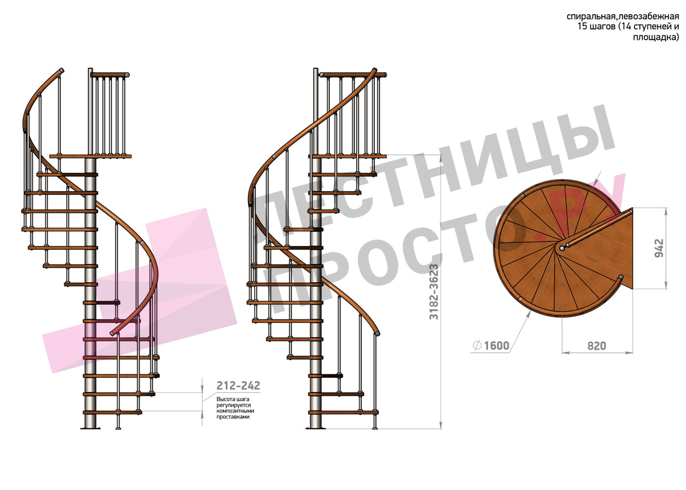 | Винтовая лестница Prosto Spiral Цршеу D120см, h225.5-247.5 см |