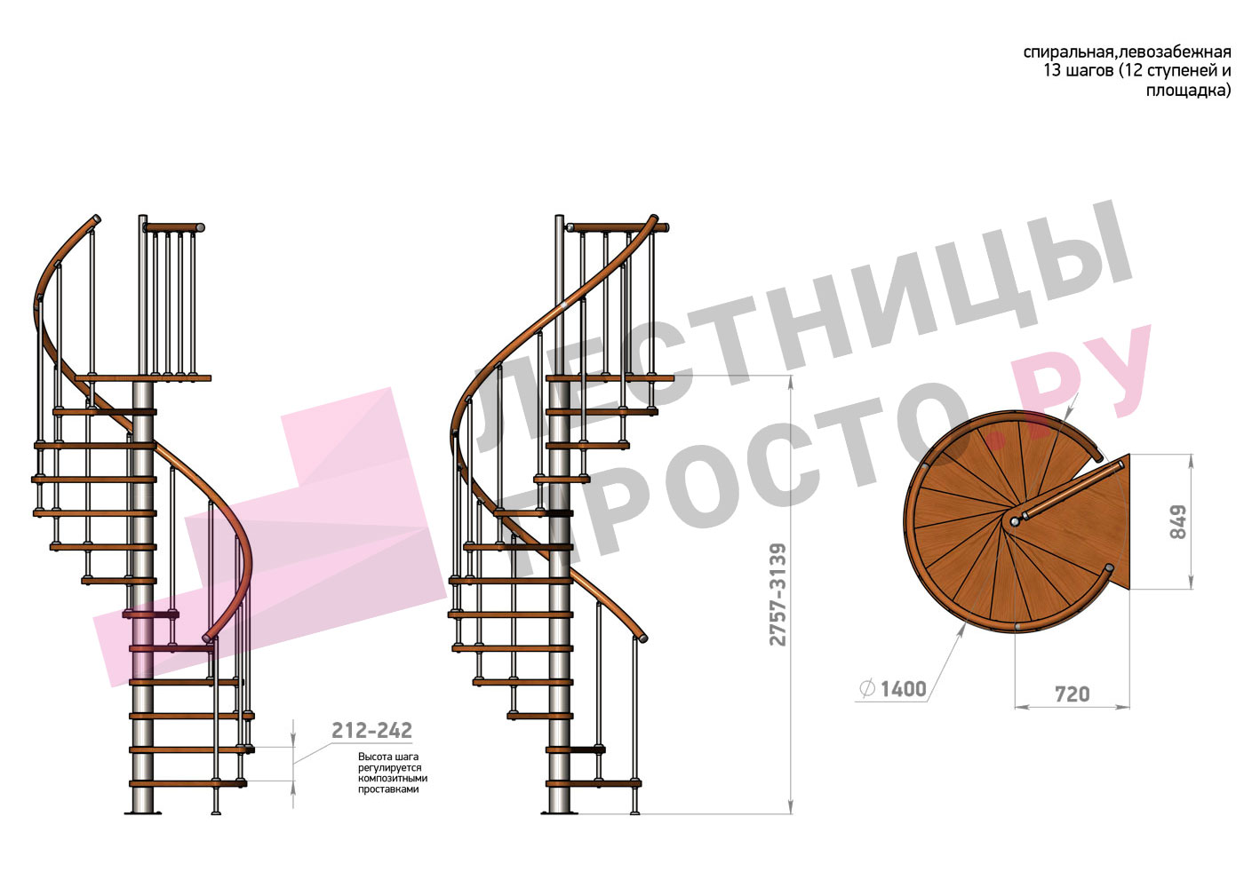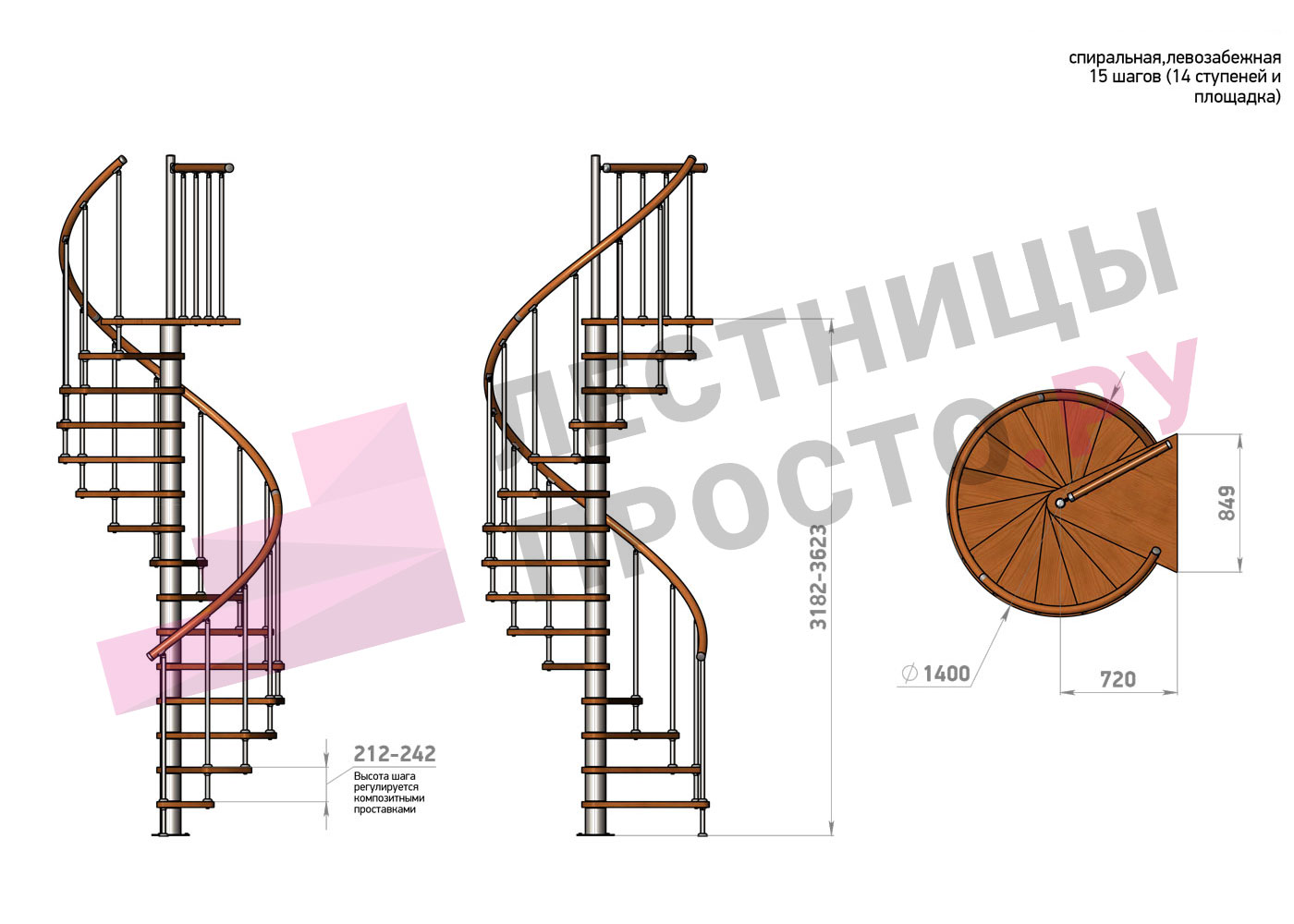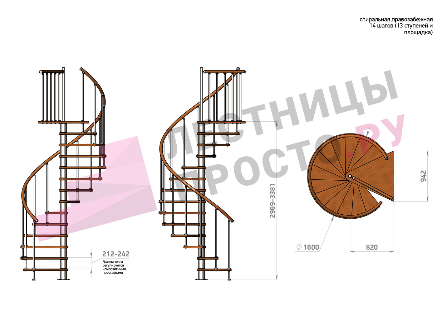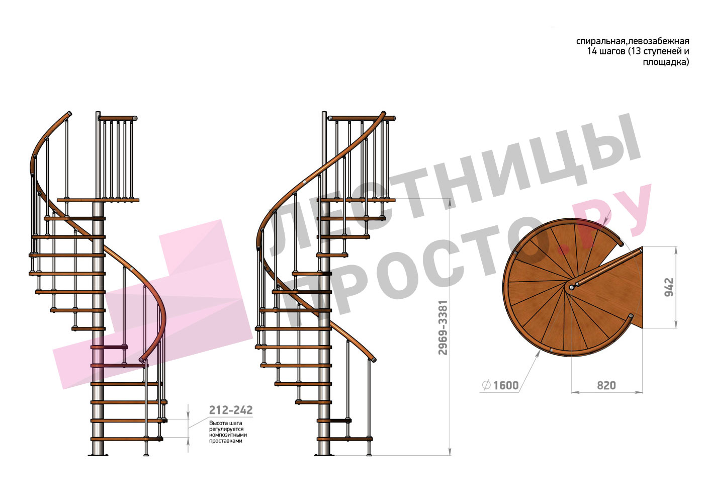 | Винтовая лестница Prosto Spiral Цршеу D120см, h225.5-247.5 см |