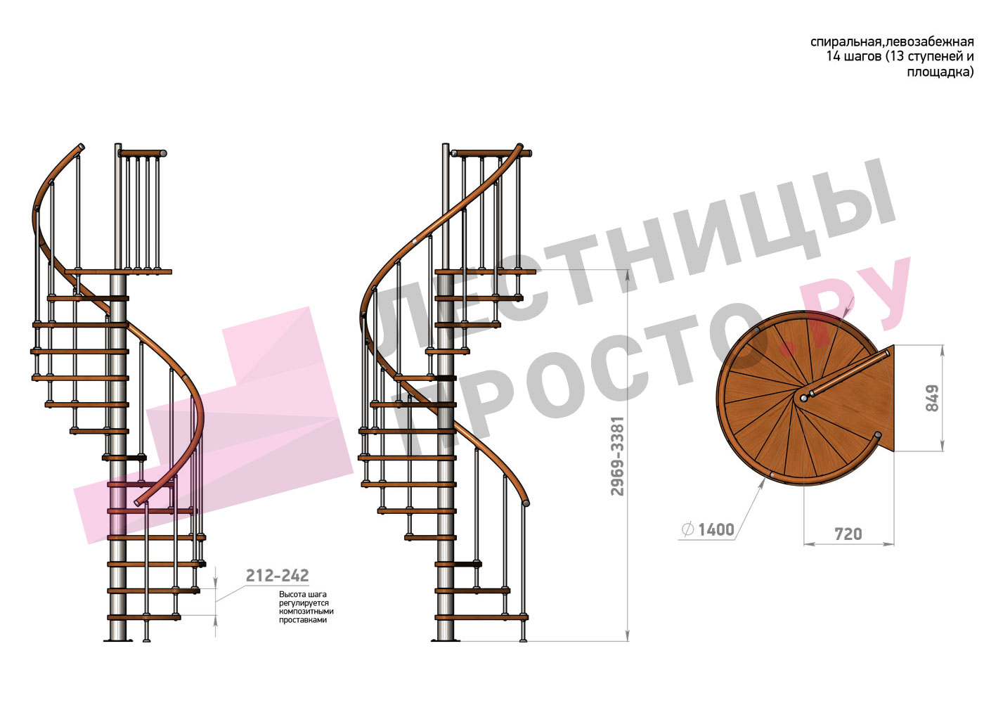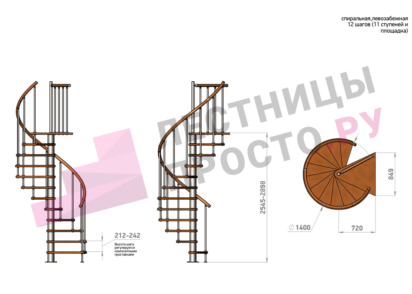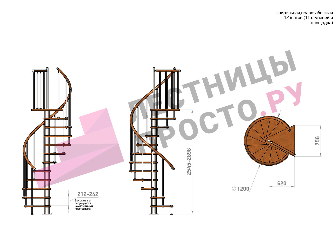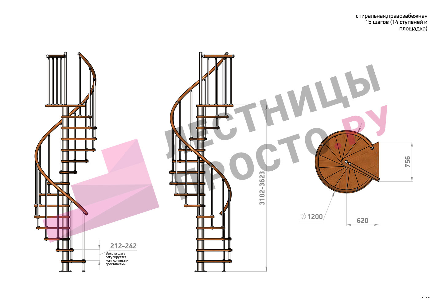 | Винтовая лестница Prosto Spiral Цршеу D120см, h225.5-247.5 см |